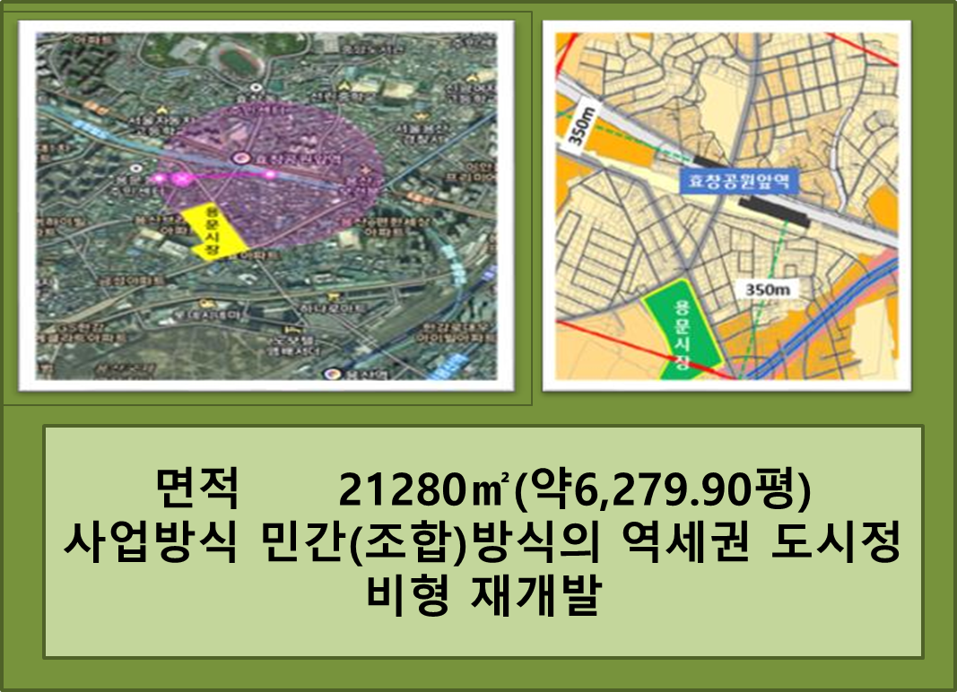 대상지는 용산구 용문동 42번지 일대 (용문전통시장)이외의 주변필지로 용산역에서 260미터 거리에 있기 때문에 역세권 쉬프트 진행하고 있으며 그 기본 내용과 사업성 등을 알아보고자 합니다.