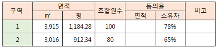 ▶동의율 78%, 65%로 조합설립을 위한 동의율 80%를 조금 남기고 있습니다.