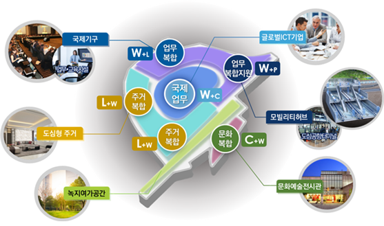 용산정비창은 융복합 국제도시로서, 다양한 활동을 한곳에서 할 수 있는 직주혼합의 도시를 조성하는 계획입니다. 이곳에는 ICT테크 기업, R&D연구소, 국제기구 등의 업무 공간과 도심형 주거, 스튜디오하우스 등의 주거 공간, e-스포츠 콤플렉스, 증강현실 공연장 등의 문화시설, 녹지 여가 공간, 플래그십 스토어, Night Life 스트리트 등의 여가 시설이 함께 조성될 예정입니다.