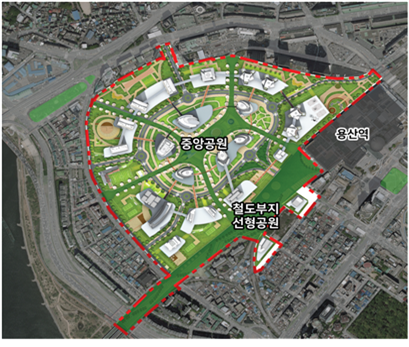지상부는 녹지.보행, 차량은 지하로-1호 모빌리티 허브조성 용산정비창 미래 국제업무지구로 재탄생됩니다.